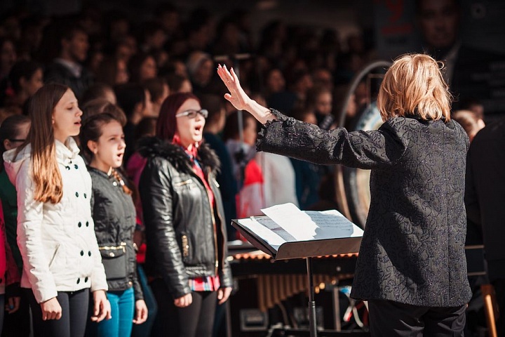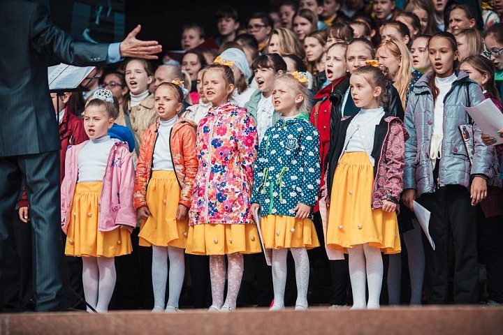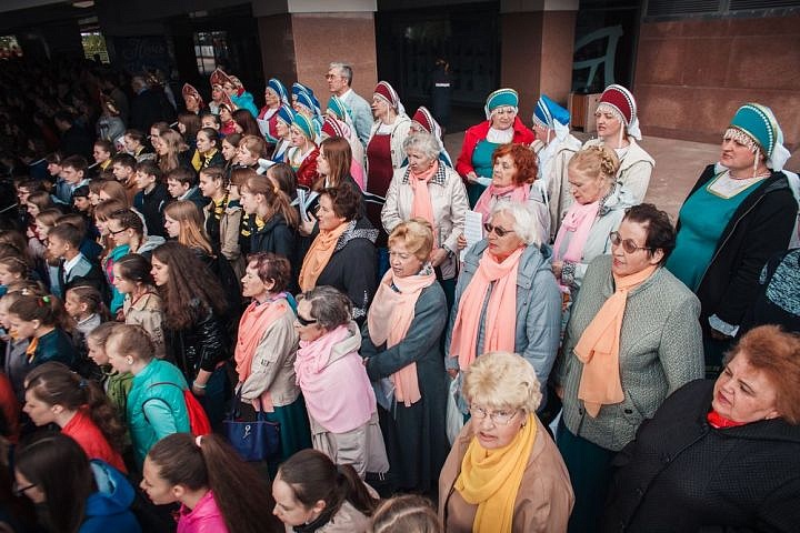 День славянской письменности и культуры в Красноярске. Полуторатысячный хор на площади Мира. 24.05.2015